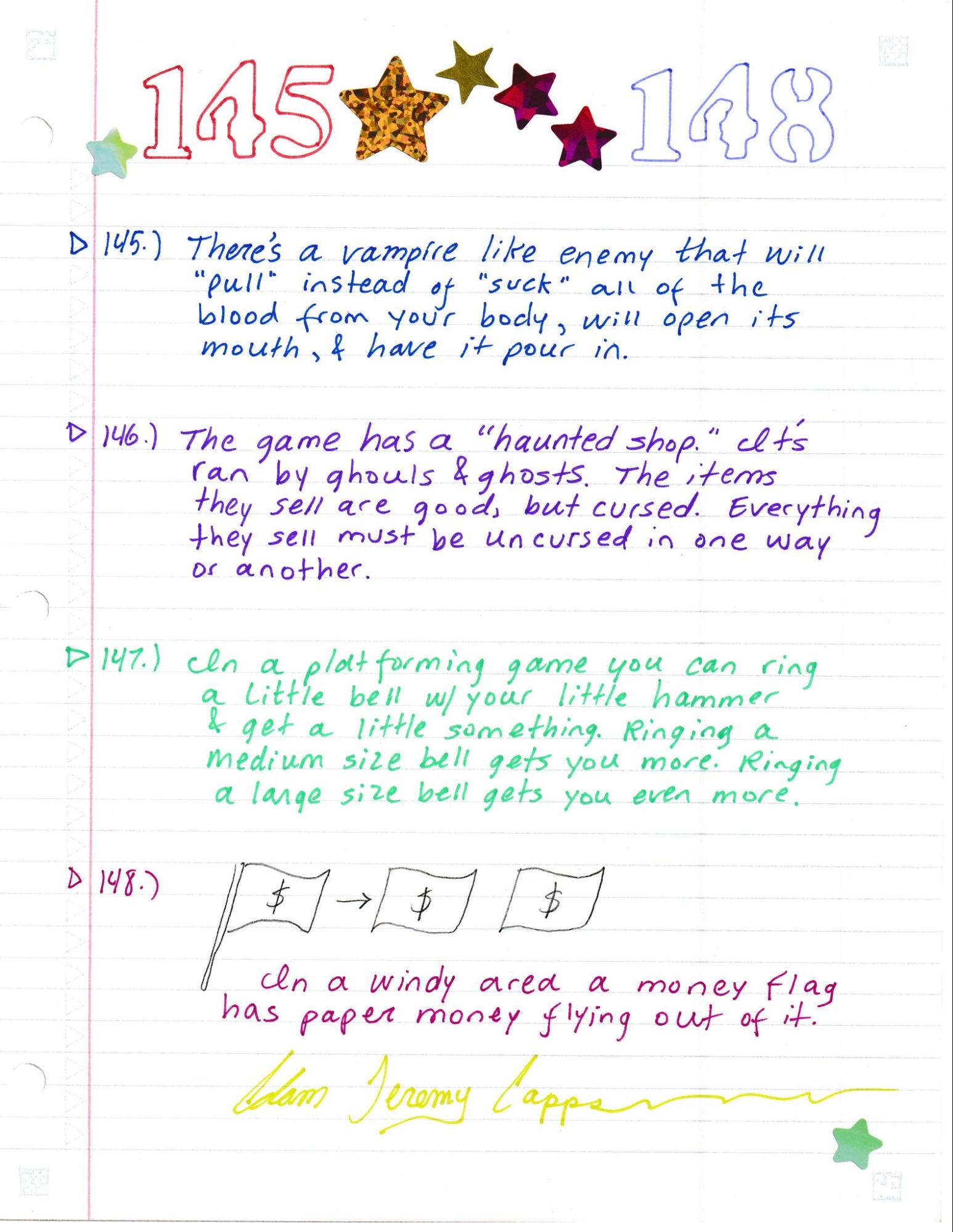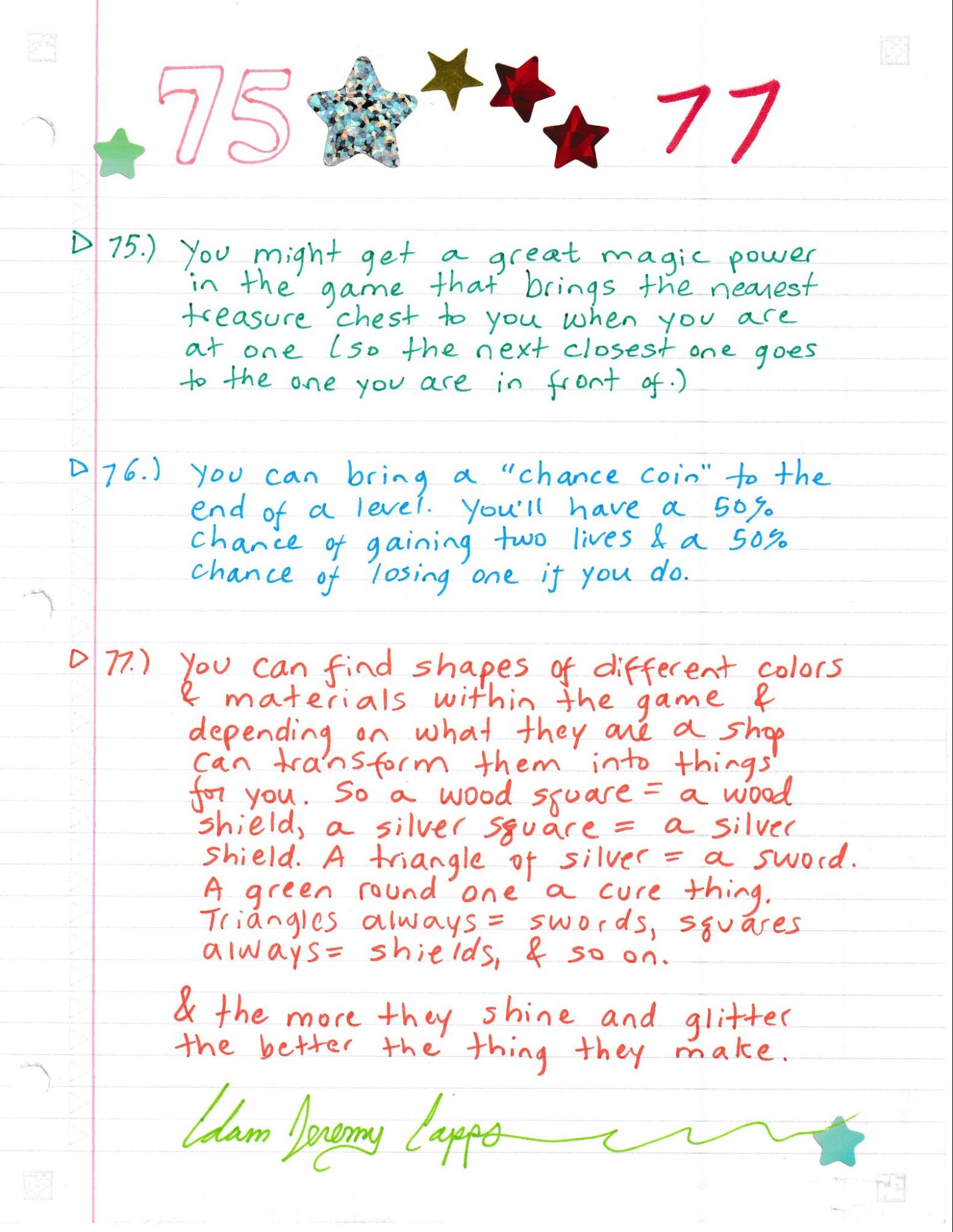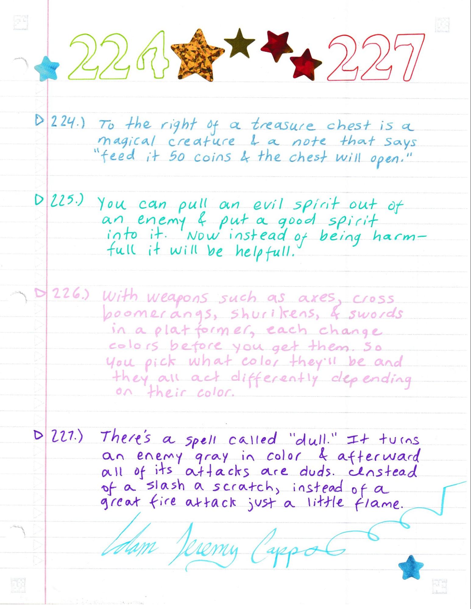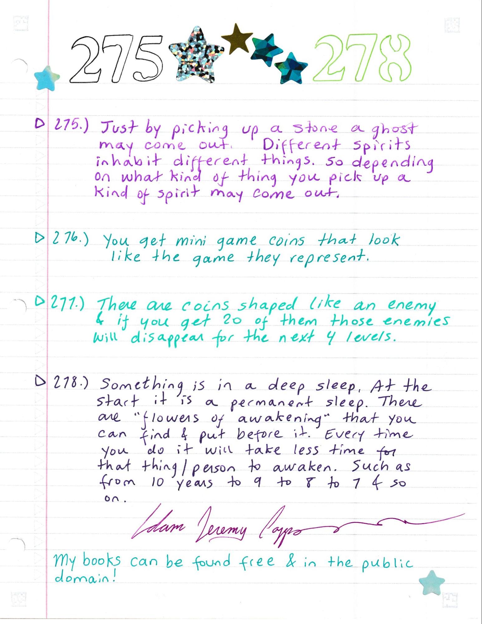 Here you will find more than three hundred ideas to put into any new video game. These ideas are entirely free in this public domain book. As a public domain book it may be freely used and freely shared. As much as I know, these ideas have never been used before. Nothing was included if it did not feel worthy enough to include. It is a highly imaginative book covering many different things. These ideas are not story/plot/synopsis ideas but are rather element/content based. Many genres are covered in this book but especially adventure, RPG, and platforming games. This is the eighth book of its kind. There are now 20 books under my name (Adam Jeremy Capps) which are all available online as free ebooks and in the public domain. They should be easy enough to find under a search as I use many different uploading sites. I would be happy if anyone posted them themselves, with or without profit, and shared them with any game makers they may know.